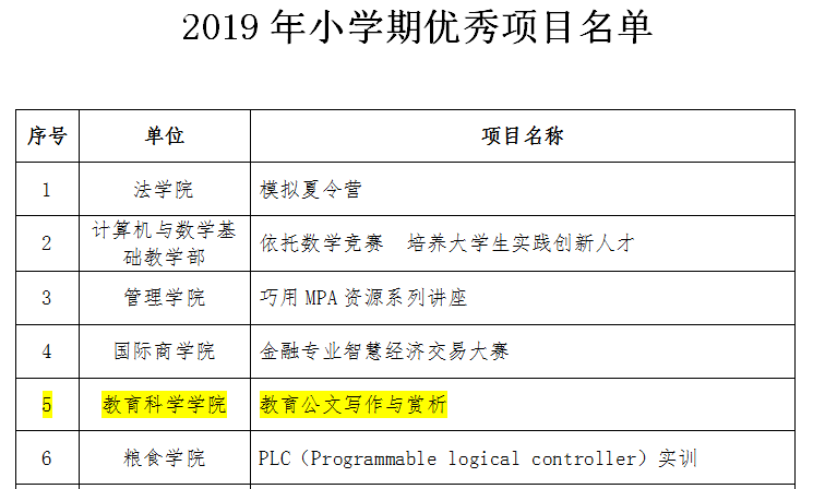 2019年12月6日,沈阳师范大学教务处公布了2019年小学期优秀项目名单,我院教育学专业勾月老师负责的《教育公文写作与赏析》被评为沈阳师范大学2019年小学期优秀项目。《教育公文写作与赏析》旨在为本科生讲解常见的教育公文的种类及写作技巧,并进行示范和训练,为本科生今后从事相关工作打下基础。