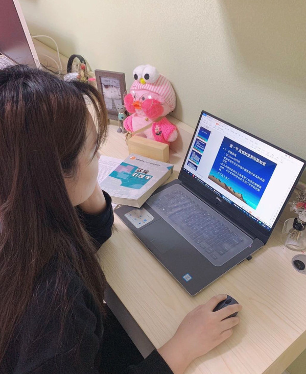王晓彤老师在进行线上教学六是加强线上教学的督导和质量反馈。教科院充分发挥学院领导班子、学院督学、教学副院长、系主任、教务员在教学督导中的作用,并形成合力,及时发现学院在线上教学方面的问题,并提出相关对策。尤其是学院督学郭瞻予教授在承担繁重的线上教学任务的同时,还认真履行教学督导职责,为线上教学活动的规范和质量的提高提出了诸多宝贵建议。学院还第一时间将教务处提供的线上教学质量反馈信息传达到相关教师,起到督导、激励和强化效果。
