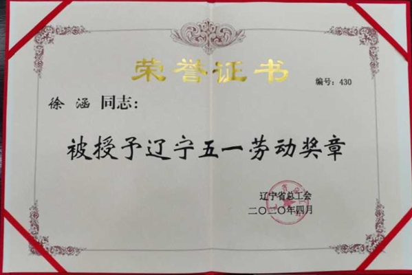 2020年“五一”国际劳动节前夕,辽宁省总工会开展了“五一劳动奖章”的评选和表彰,我校ty8天游平台登录徐涵教授凭借其在职业技术教育领域的卓越成就和突出贡献,获此殊荣。