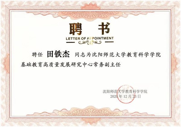 田铁杰书记兼任中心常务副主任聘书