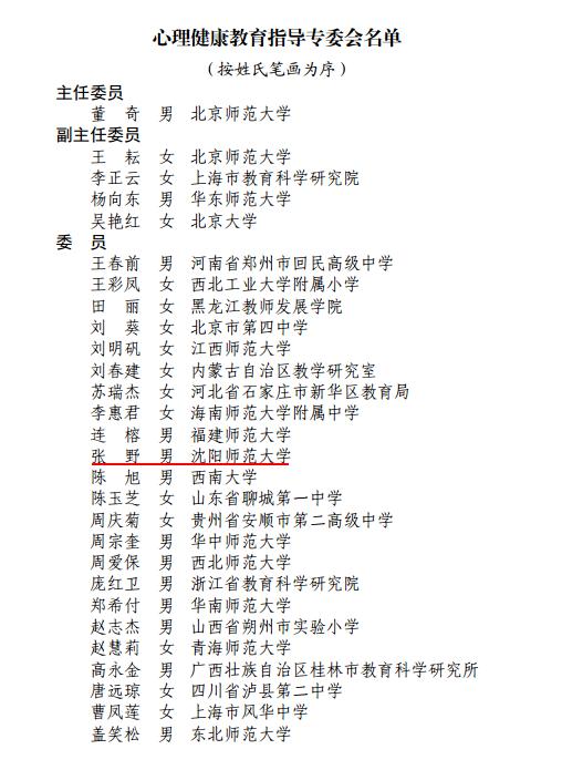近日,教育部办公厅发布了《关于公布教育部基础教育教学指导专业委员会委员名单的通知》(教基厅函〔2021〕2号),我院张野教授被聘为心理健康教育指导专委会委员。