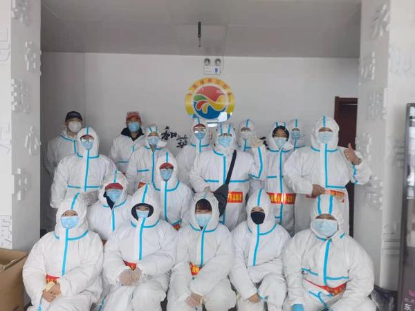 (最后一排右二是我院研究生徐靖智)作为志愿者的她听从指挥、服从安排。在做志愿服务期间,她协助社区人员分发政府物资,奔走在楼栋里进行楼道消杀,穿梭在街道中为居民采买所需药品等。她用身穿防护服在雪地里艰难前行的脚步、用青年志愿者的责任与担当参与构建联防联控的人民防线。