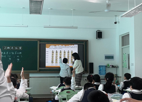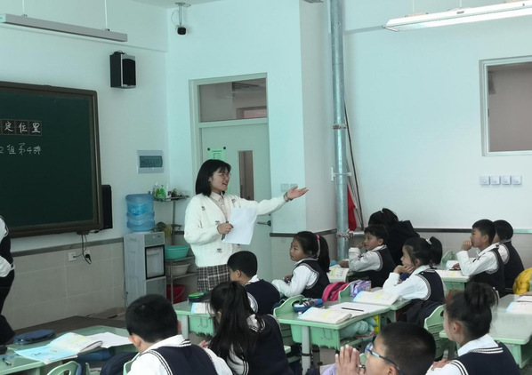 我院2018级教育学专业周晶楠同学精心准备了一节小学四年级数学公开课——《确定位置》,属图形与几何领域的学习内容。我院勾月老师与珠江五校梦田校区的领导老师一同听课。在课前,周晶楠同学向小朋友们下发了学习清单,来辅助课堂教学。在课中,她巧妙地创设了“家长会”的问题情境导入本节课的学习内容,又通过“表示位置我最快”“创作简便我最新”“学会知识我能行”“数对找位我最准”这四个环节串联新课讲授的部分,完成本节课的知识目标和能力目标。紧接着,又利用班级实际的座位分布情况,进行了“我说你站”和“数对接龙”两个小游戏来巩固本节所学,并让小朋友们在实际应用中感受数学学科对于解决问题的价值和意义,完成本节课的情感目标。班级同学积极参与,课堂效果活跃热烈。