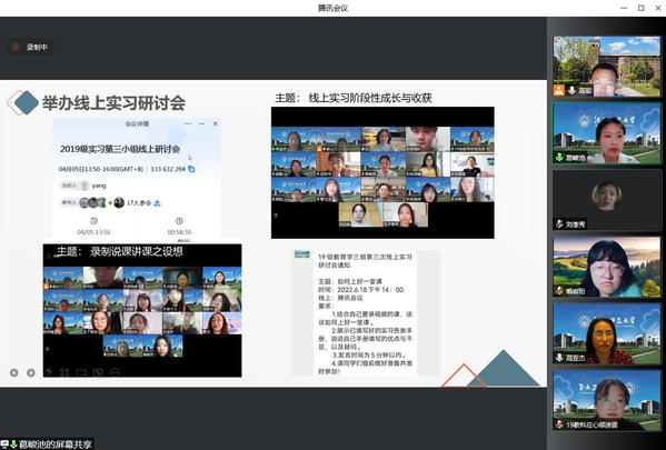 2022年7月8日晚上19:30至21:45,ty8天游平台登录依托腾讯会议以线上方式举办了“2019级师范生实习总结会”。2019级应用心理学专业和教育学专业全体师范生、应用心理学系主任杨硕老师、教育学系主任朱艳老师、指导教师代表高亚杰教师参加了此次实习总结会。副院长高军老师主持了实习总结会。