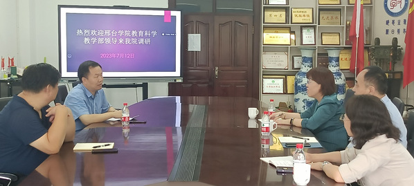 2023年7月12日下午,邢台学院教育科学教学部高建超书记、赵红研副书记、马雪玉副主任一行3人来我院调研本科专业建设工作。我院高军副院长、王江洋副院长、郑欣副书记在田家炳教育书院208会议室与邢台学院教育科学教学部领导开展了专业建设交流。