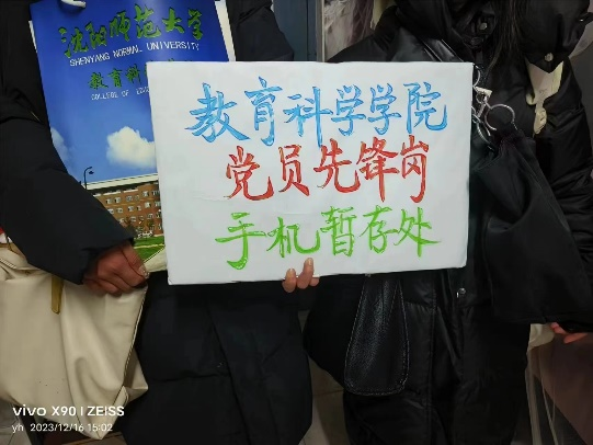 12月23、24日,我院本科生党支部6名学生党员分批次赴汇文楼、弘文楼两个考点为考研学子保驾护航,她们分别在楼前手持引导牌,收取到考生寄存的物品后现场装进信封,妥善保存。同时,她们也为全体考研学子加油打气,祝愿大家一战成硕,考研上岸!