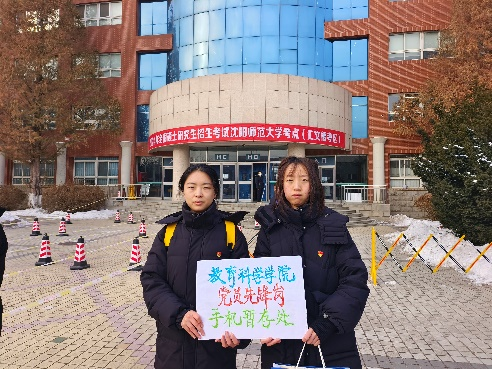寒冬中学生党员志愿者们的坚守为考生带来了阵阵暖意,未来,希望有更多的青年学生加入其中,践行奉献精神,将党员先锋岗名牌擦的更耀眼。最后,祝愿全体考生取得满意成绩。
