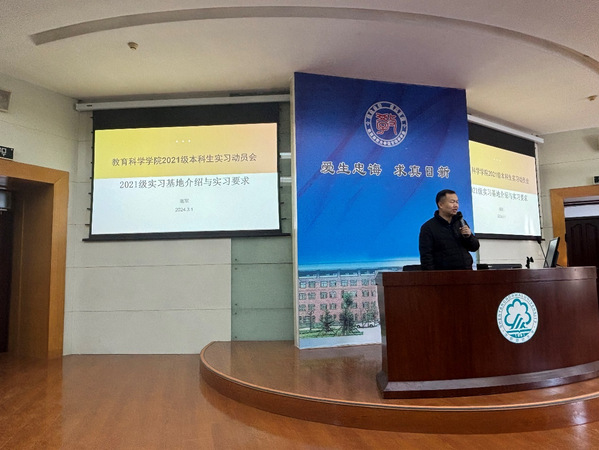 教育实习是师范生必修的教师教育综合实践课程,对于师范生厚植从教意愿、提高教师教育技能、增进对教育实践的了解,均具有重要的作用。ty8天游平台登录历来十分重视师范生的教育实习工作。2024年3月1日上午,在田家炳教育书院213报告厅举办了2021级本科师范生教育实习动员会。2021级教育学师范专业和应用心理学师范专业、2022级教育学二学位和应用心理学二学位全体师范生,高军副院长、孙洋老师、宋国才老师、刘爽老师和石芮老师等部分带队教师代表参加了实习动员会。