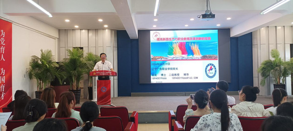 杨克院长为我院师生做了“提高新质生产力职业教育改革创新的实践”的报告。在报告中,杨克院长首先向我院师范生阐述了“新质生产力”的提出背景及主要内涵,讲解了新质生产力与新“双高”建设的关系,图文并茂地对近年来辽宁广告职业学院的办学理念、双师教学团队建设、学生学业评价、互联网+教学改革、数字化校园、办学举措和成就做了详细讲解。随后,杨院长讲解了辽宁广告职业学院在促进文体旅融合发展方面的实践,对辽宁广告职业学院能力本位、课程教学模式(行动体系)、职业技能教材开发的基本模式、岗课赛证课程改革创新等做了介绍,并就未来的发展做了展望。