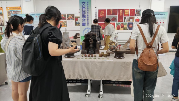 在本次教育见习活动的第二个环节,杨克院长带领我院师生参观了该校非常有特色的“艺汇中心”,亲自为我院师生讲解了该艺汇中心收藏的新辽陶陶艺、京剧传承、帝墟牛河梁、名家摄影、书画、视觉设计、服装设计、老字号品牌设计、非遗传承技艺、项目成果以及文创精品等创新实践成果。该艺汇中心的展品大多数都是该校师生的文创作品,十分精美和富有创意,既有历史和文化方面的作品,也有目前引领市场发展的商业创意作品。