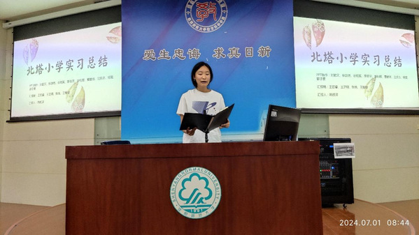 本学期,我院2021级教育学、应用心理学本科师范生分散在16个实习基地开展了为期一整个学期的教育实习工作。在此次总结会上,每个实习基地派1名实习生代表小组图文并茂地从实习学校介绍、实习中的主要工作、实习收获等方面做了汇报和展示,有的实习小组还制作了精美的实习总结视频。