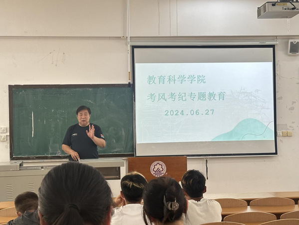 期末考试来临之际,为进一步强化本科生的考试纪律意识,进一步树立诚信考试精神,确保考试公平公正,加强教学质量保障体系建设,2024年6月27日下午,我院在博文楼103和104教室,分别为应用心理学专业和教育学专业本科生开展了考风考纪专题教育活动。