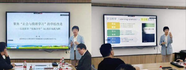 沈阳市基础教育研究中心赵爽老师对她主持的全国教育科学规划课题“协同育人视域下社会情感学习的学校支持体系研究”的阶段性成果进行了汇报,报告题目是《社会与情绪学习的沈阳实践》。她就“怎样培养时代新人”,向与会者介绍了近几年学术界经由三种途径引入的“社会与情绪学习”(SEL)概念群对基础教育研究的影响。她认为,在推进中国式教育现代化的过程中,不应采取全盘否定或全盘接受的两极态度对待西方概念和理论,而应首先深入理解西方概念所对应的社会背景与现实情况,积极探索这些概念和理论在中国的本土适用性与实践路径。基于此,她提出SEL看起来是新生概念,实际上属于发展性概念和合成性概念,其实质是对儿童情绪发展、社会性发展和代表学业水平的智力发展的整合,象征着儿童的整全性和发展的可持续性。如果说核心素养表达的是理想的人的规格,那么SEL表达的就是“核心素养”形成的过程。她从学习科学产生的背景介绍了社会与情绪学习概念提出的首要意义是改变了学习观、发展观和儿童观,并因此动摇了传统教育观的基础。她认为,从这一点出发,我们能更好地理解习近平总书记关于“教育系统跃升”的论述,也能更深刻理解当前教育为何务必要走综合改革之路。随后,她介绍了“社会与情绪”概念群的教育应用场景和依托课题在沈阳市通过校地合作帮助学校和教育行政部门开展的历时三年的系列教育行动研究及取得的相关成果,包括学术论文、被采纳的资政建议、“双服务”获奖和孵化的新项目等。