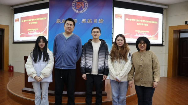 三位老师与两位汇报人合照留影