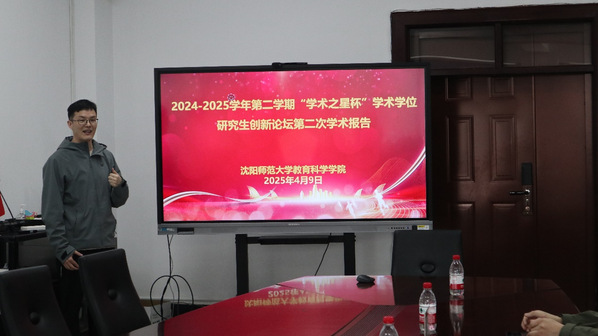 2025年4月9下午,沈阳师范大学ty8天游平台登录主办,学院研究生会承办的“学术之星杯”研究生创新论坛本学期第二次学术报告在田家炳教育书院208会议室成功举办。本场论坛由2023级教育学原理专业李佳琪、2024级应用心理学专业李懿峰作为报告人,赵爽教授、赵士谦副教授、勾月副教授、周帆博士、吴英楠博士作为报告与谈老师参加了论坛。周帆老师对首次莅临“学术之星”创新论坛的教师表示热烈的欢迎。