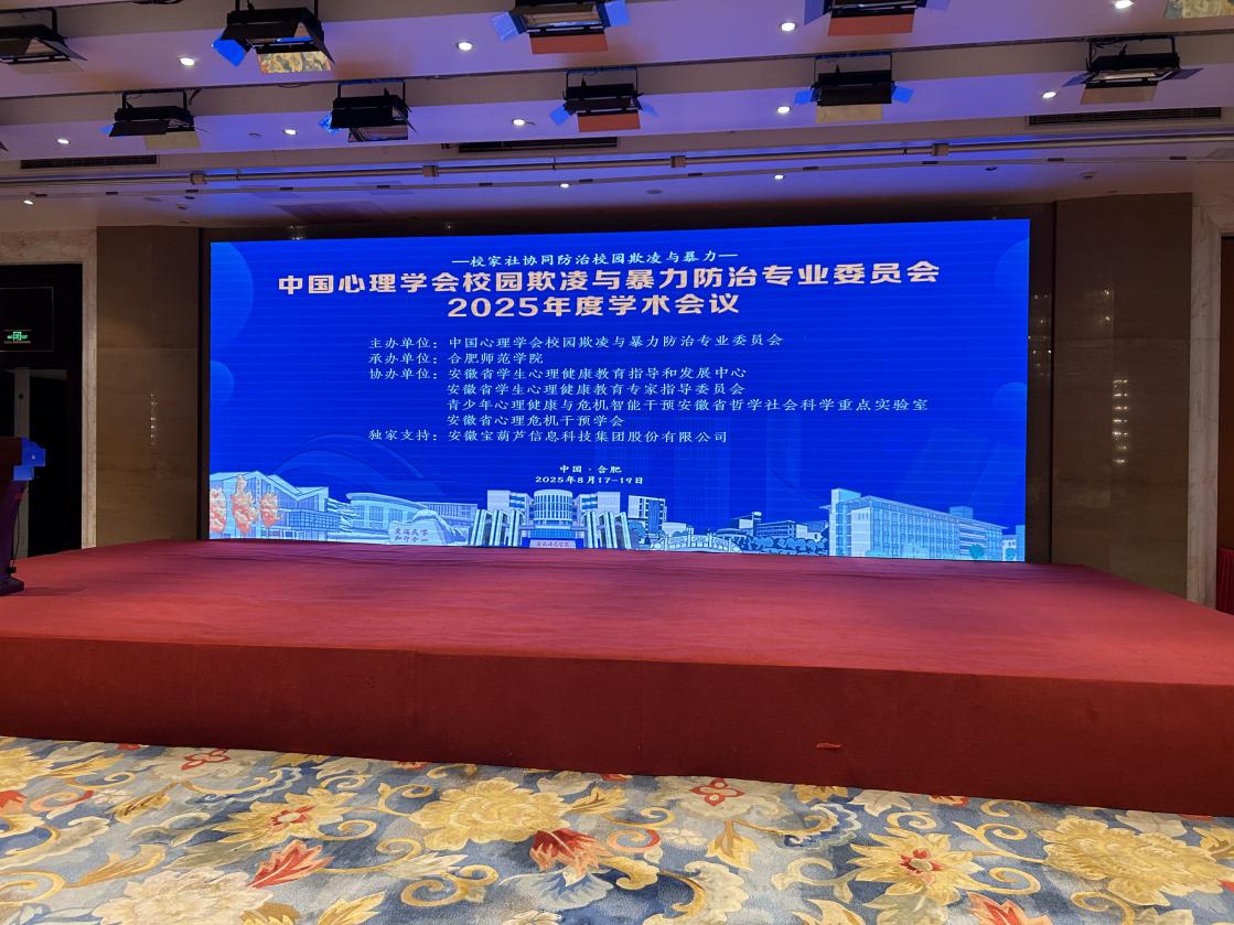 2025年8月17日至19日,作为国内校园欺凌与暴力防治研究领域的重要学术盛会,由中国心理学会校园欺凌与暴力防治专业委员会主办的2025年度学术会议在安徽合肥顺利召开。我院张野教授凭借其在该领域的深厚学术积累和研究成果,作为特邀专家应邀出席,并作了大会主旨报告。