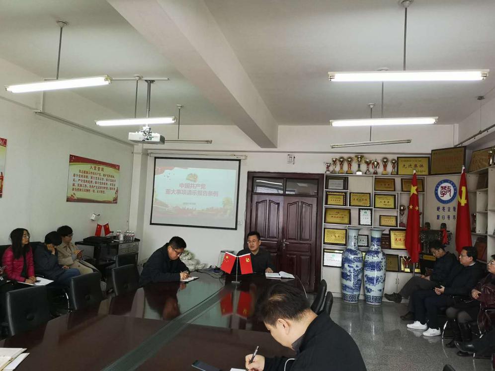 2019年3月15日,ty8天游平台登录全体教师在田家炳208室在党总支书记田铁杰的带领下,对《中国共产党重大事项请示报告条例》进行认真学习。学院例会后,田铁杰书记对条例进行了重点讲解,指出请示报告制度是我们党的一项重要政治纪律、组织纪律、工作纪律,是执行民主集中制的有效工作机制,对于坚决维护习近平总书记中央的核心、全党的核心地位,坚决维护党中央权威和集中统一领导,保证全党团结统一和行动一致,具有重要意义。