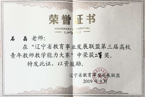 石晶老师获得辽宁省教育事业发展联盟第三届高校青年教师教学能力大赛二等奖