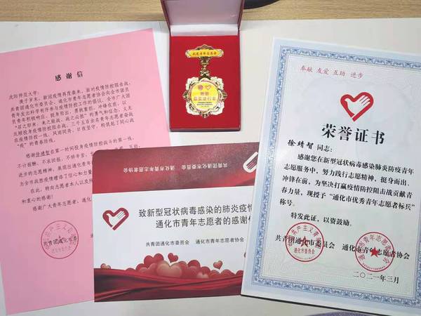 徐靖智同学获得“通化市优秀青年志愿者标兵”称号