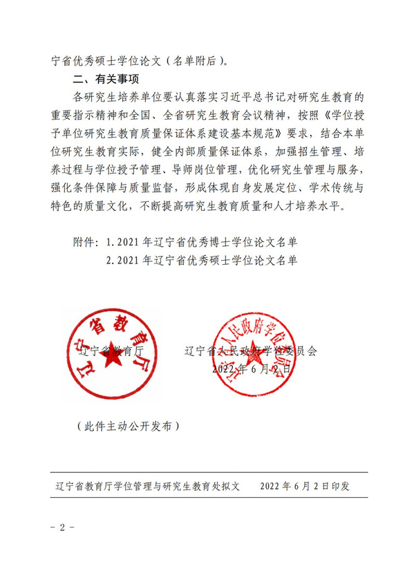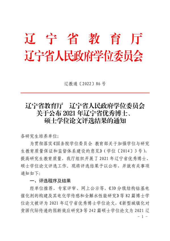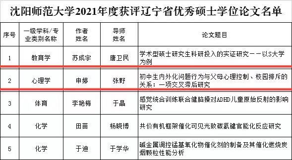 6月2日,辽宁省教育厅、辽宁省人民政府学位委员会正式下发了《关于公布2021年辽宁省优秀博士、硕士学位论文评选结果的通知》(辽教通〔2022〕86号),经过高校组织推荐,教育厅委托教育部学位中心论文送审平台组织权威专家评审、厅长办公会审议、网上公示等环节,我院高等教育学专业唐卫民教授,应用心理学专业张野教授指导的硕士论文,在全省众多参评论文中脱颖而出,获评2021年度辽宁省优秀硕士论文。我校共有5篇论文获此殊荣,在全省省属高校中居于前列。