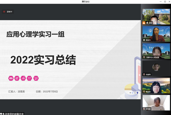 2022年7月8日晚上19:30至21:45,ty8天游平台登录依托腾讯会议以线上方式举办了“2019级师范生实习总结会”。2019级应用心理学专业和教育学专业全体师范生、应用心理学系主任杨硕老师、教育学系主任朱艳老师、指导教师代表高亚杰教师参加了此次实习总结会。副院长高军老师主持了实习总结会。