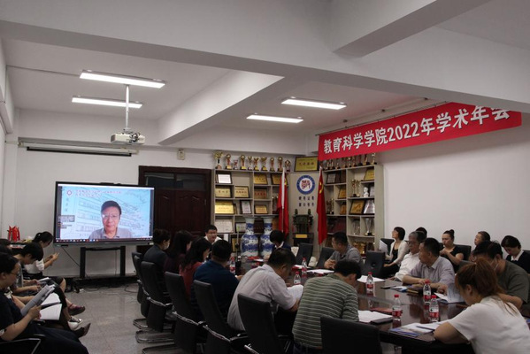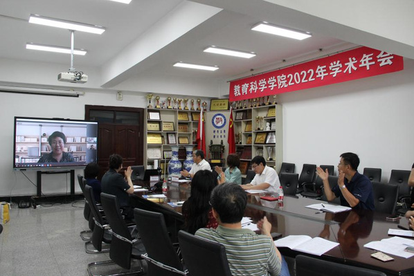 沈阳师范大学ty8天游平台登录2022年学术年会暨暑期科研工作会议于7月6、7两日在田家炳教育书院208会议室隆重召开。本次会议主会场在线下,全程线上直播。校研究生院卢伟院长莅临学院,教科院朴雪涛院长、张野书记、高军副院长、王江洋副院长、郑欣副书记及全体教师参加了会议开幕式。