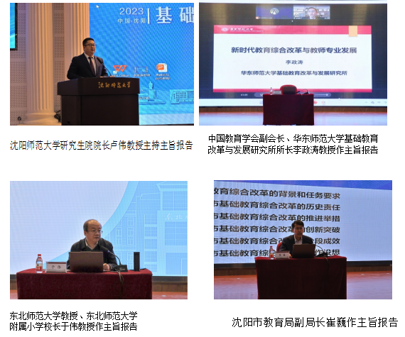 沈阳师范大学副校长佟玉平教授在致辞中表示,本次会议的召开是深入学习和贯彻总书记关于东北振兴的讲话精神、推动区域基础教育改革发展、助力东北全面振兴和沈阳国家中心城市建设的重要举措和阶段性成果,具有重要的现实意义。沈阳市教育局党组书记、局长孙常福在致辞中指出,本次基础教育综合改革高层论坛的召开,是推动沈阳市基础教育综合改革国家实验区建设的及时雨,也是下一步综合改革的助推器,更是提升基础教育质量的快进键。沈阳市社科联党组书记、主席齐海涛在致辞中肯定了沈阳市基础教育研究中心成立以来取得的优异成果,并表示本次会议聚焦基础教育综合改革问题,凸显了会议主办方对国家基础教育重大问题的敏锐把握,也体现了沈阳市基础教育研究中心和沈阳师范大学服务沈阳市基础教育发展的责任担当。