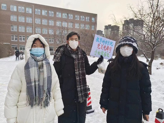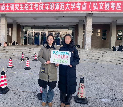 12月23、24日,我院本科生党支部6名学生党员分批次赴汇文楼、弘文楼两个考点为考研学子保驾护航,她们分别在楼前手持引导牌,收取到考生寄存的物品后现场装进信封,妥善保存。同时,她们也为全体考研学子加油打气,祝愿大家一战成硕,考研上岸!
