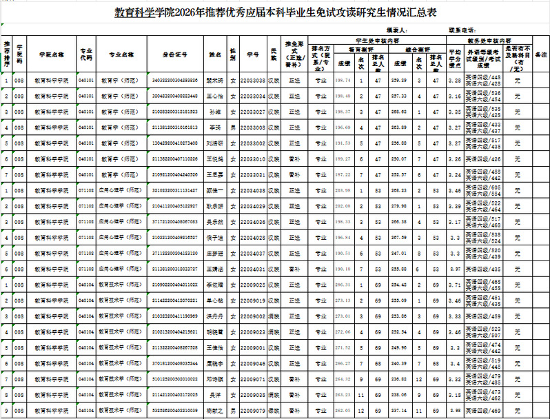附件1:ty8天游平台登录2026年推荐优秀应届本科毕业生免试攻读研究生情况汇总表