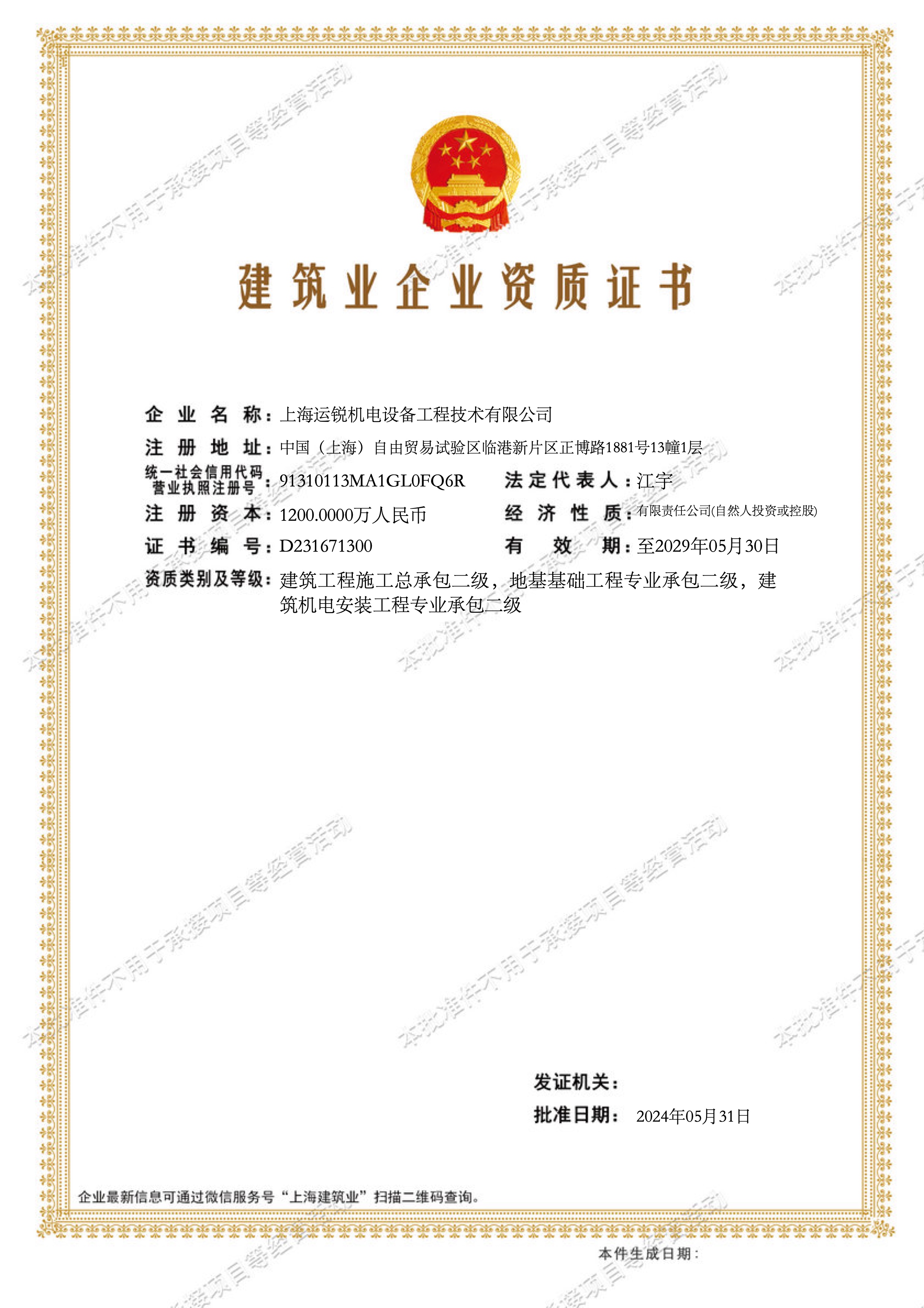 ty8天游平台登录获批上海住建委颁发的建筑业企业资质证书,成为行业内唯一同时具备建筑工程施工总承包资质、钢结构制作与安装专业承包资质,地基基础工程专业承包资质、建筑机电安装工程专业承包资质的设备生产厂家。并获得质量管理体系认证、环境管理体系认证、职业健康安全管理体系认证等三体系认证。