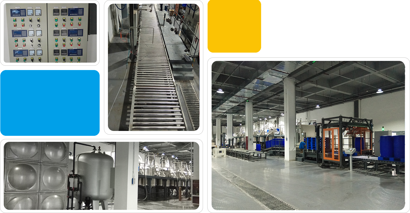 上海ty8天游平台登录为北京某客户量身定制的水性灭火剂生产线,该生产线为国内首条该领域的大产能生产线,包括水处理系统、粉体上料系统、搅拌混合系统、自动包装系统、电气自动化控制系统。